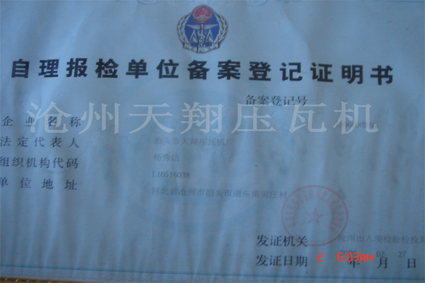 滄州天翔壓瓦機有限公司鄭重聲明:http://www.cztxywjx.com和http://adlma.cn為我公司指定官方域名(網(wǎng)站),其他均為假冒,其發(fā)布信息和活動均與我公司無關(guān)。